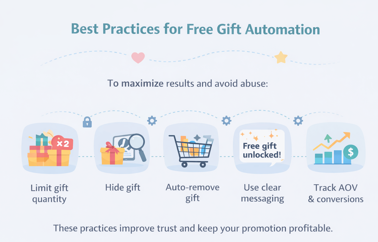 Çoğu Shopify satıcısı için özel bir otomasyon çözümü en güvenilir yaklaşımdır. Hediyeleri otomatik olarak ekleyip çıkaran, sepet koşullarını gerçek zamanlı olarak uygulayan ve kötüye kullanımı önleyen bir uygulama kullanmak, daha sorunsuz bir ödeme deneyimi yaratır ve müşteri güveni oluşturur.